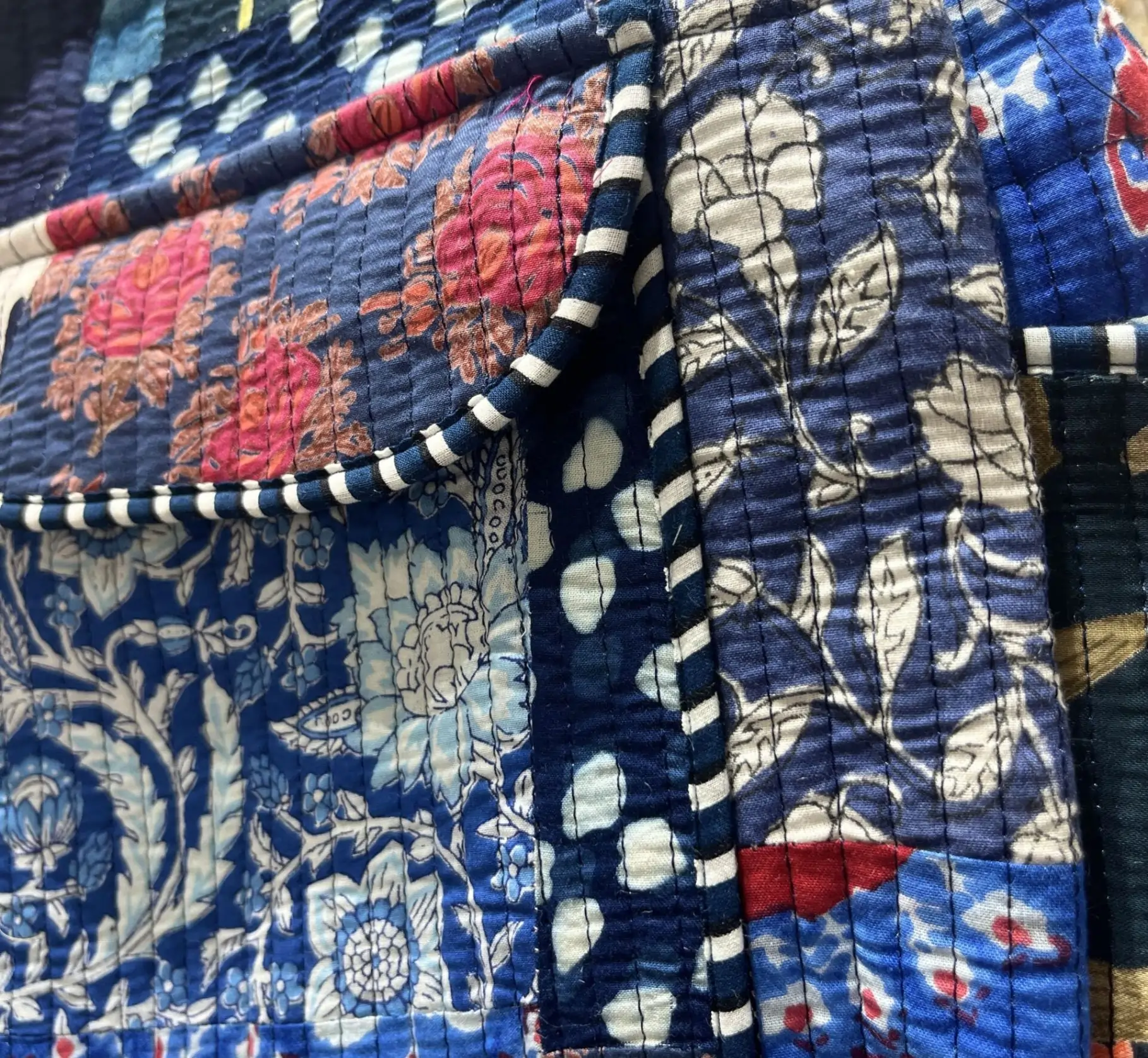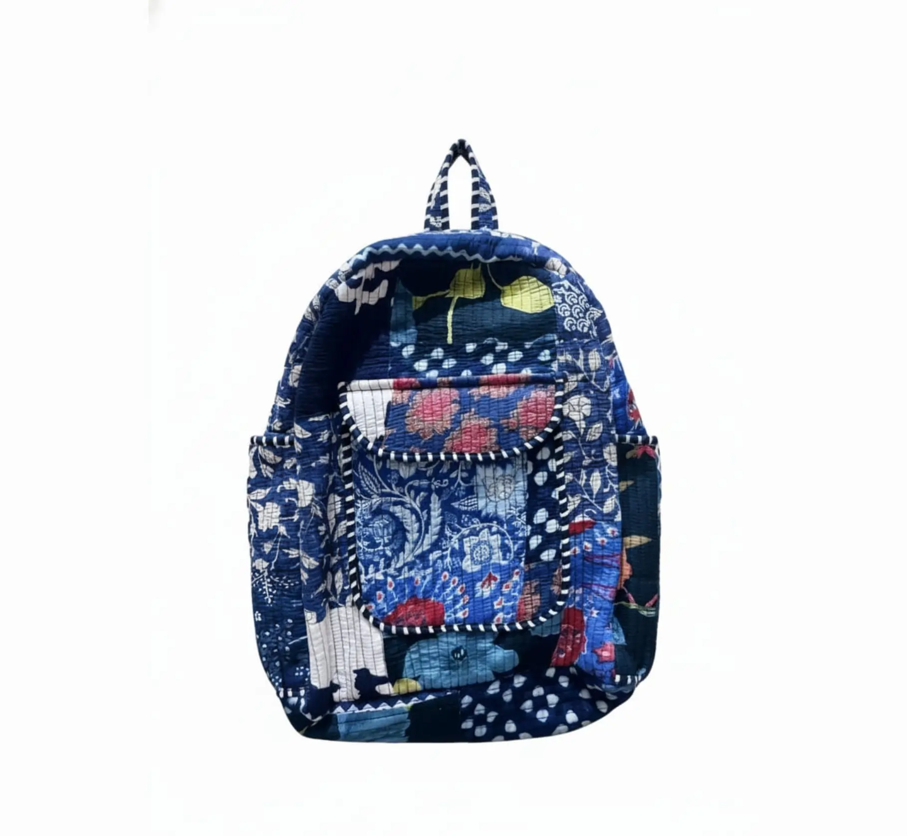 A stylish and durable quilted cotton backpack designed for everyday comfort and convenience. It features a spacious 20L main compartment with a front zip pocket for quick access to essentials. The artistic print with striped trim accents gives it a trendy look, perfect for school, travel, or daily use. Fits laptops up to 14 inches with strong zippers and reinforced stitching for long-lasting performance.