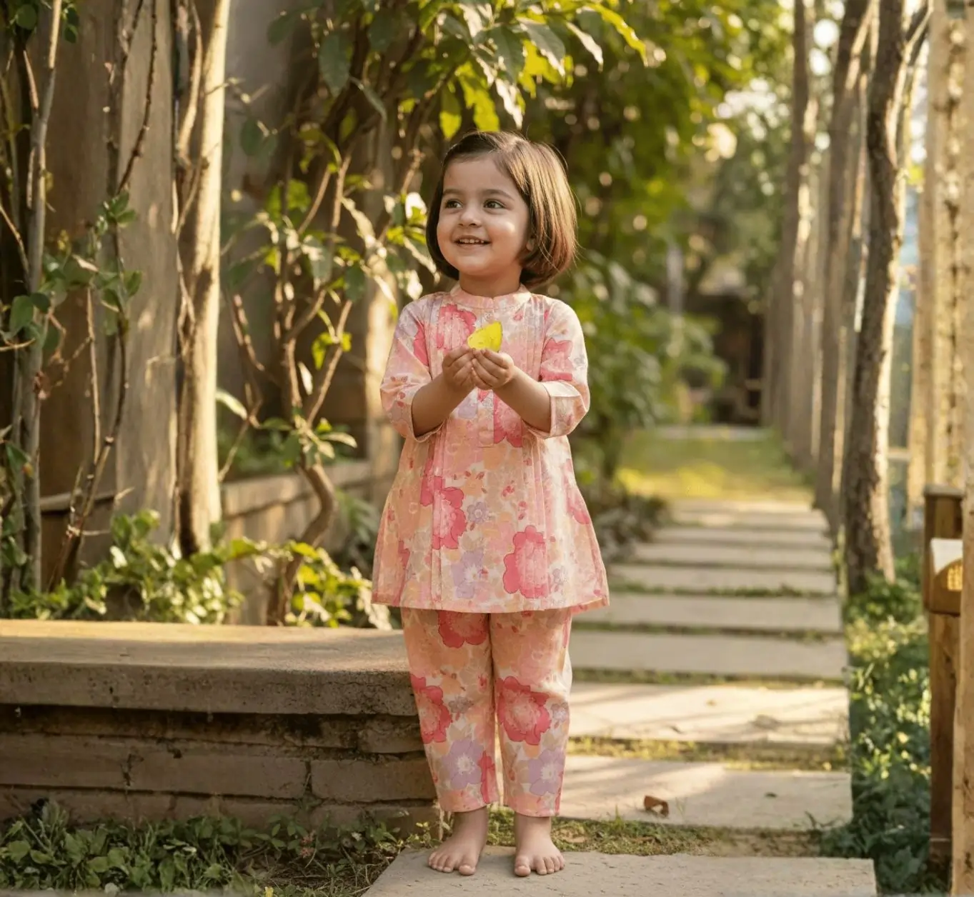 Be the first to review “Soft Cotton Peach Girls Co-ord Set for Daily Wear”