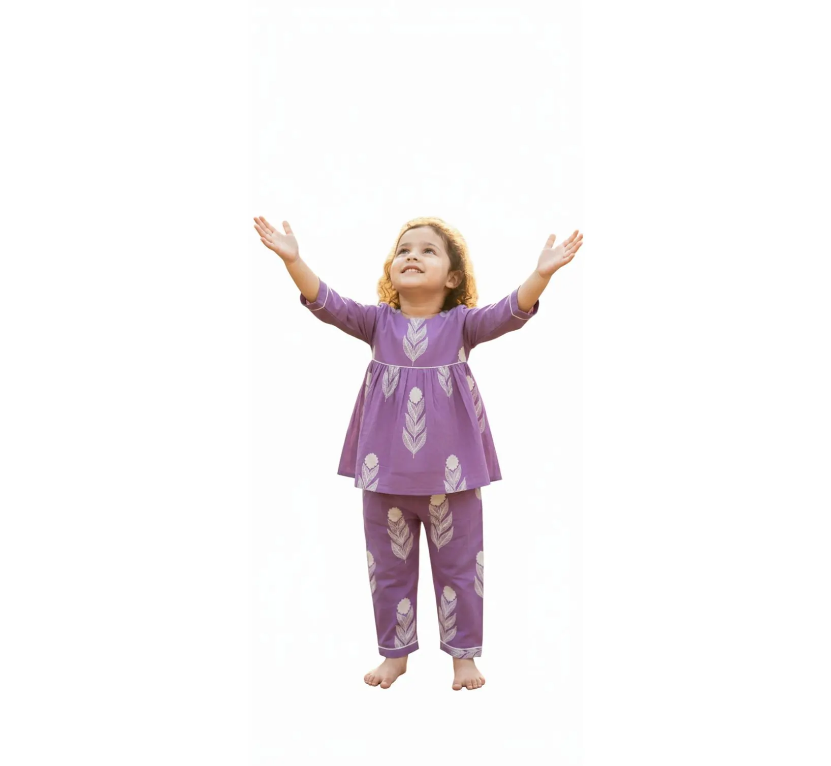 Keep your little girl stylish and comfortable all day long with our Girls Co-ord Set, designed for effortless fashion and daily wear comfort. Made from soft and breathable cotton fabric, this co-ord set feels gentle on the skin and keeps your child relaxed throughout the day. Featuring a trendy 3/4 sleeve pattern and a beautiful purple shade, this set is perfect for casual outings, playtime, or family gatherings.