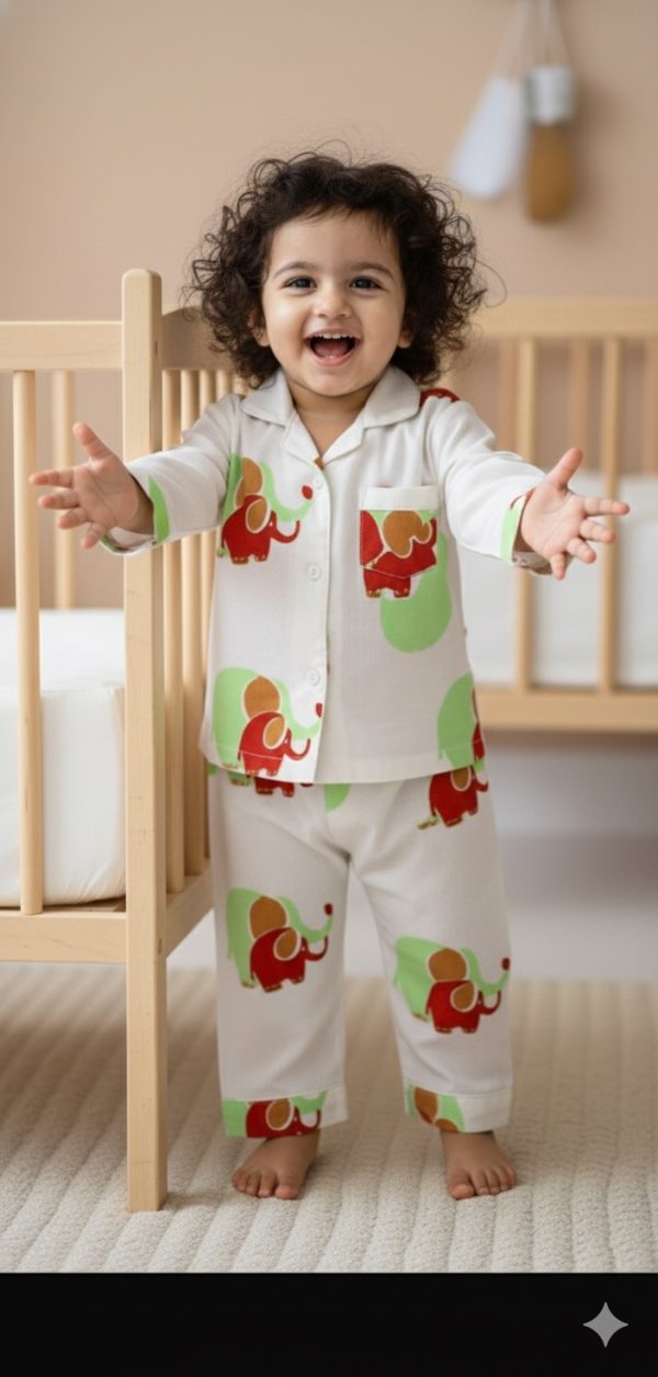 Kids Night Suit – Green Elephant