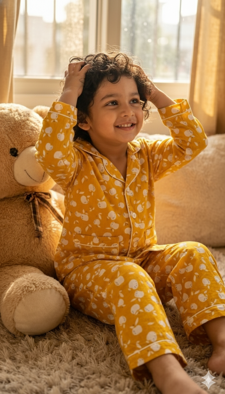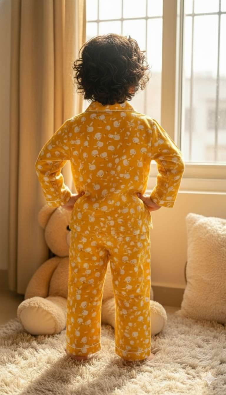 Keep your little one warm and comfortable through chilly nights with our Kids Winter Night Suit, thoughtfully crafted for cozy sleep and all-night comfort. Made from premium poplin fabric, this night suit feels soft on the skin while providing breathable warmth—perfect for winter use.