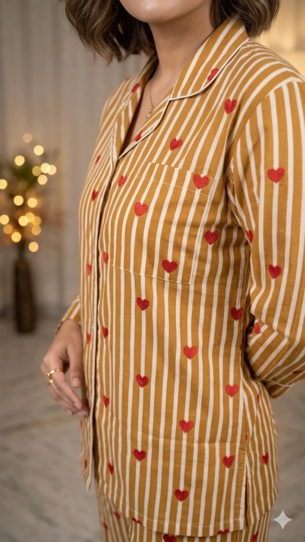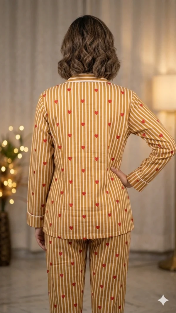 Slip into comfort with this classic striped cotton night suit, perfect for a cozy night’s sleep. This full-sleeve women’s night suit is available in sizes S to XXL for the perfect fit.